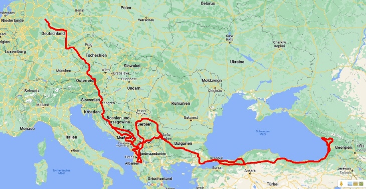 Routenverlauf Tour Balkan-Türkei-Georgien 2022 Gesamtfahrstrecke 12054 Km