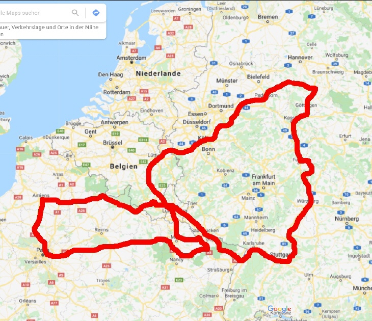 Tourverlauf Auto Nach der verregneten Motorrad Tour gings mit dem Auto auf eine Nordfrankreich Tour, Elsass, Lothringen, Champagne, Paris und Teile der Maginot Linie wollte ich mir anschauen. Es war eine interessante Reise durch herrliche Landschaften und kleine Orte...mit wenig Regen...