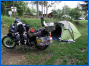 Am ersten Tag war es unerträglich heiss so das ich ohne Jacke fahren musste...Langarm T-Shirt und die Hände dick mit Sonnencreme konnte ich es einigermassen aushalten, nach ca. 450 Km erreichte ich den Campingplatz Donnersberg bei Gerbach....sehr idyllisch im Wald gelegen mit kleinem See, aber 27.00 EURO für ein kleines Zelt + Motorrad ist happig...naja... es war schon Spät so blieb ich...nach einen guten Frühstück ging es vorbei an Karlruhe über Pforzheim in den Schwarzwald zum Campingplatz Schlüchtal bei Birkendorf Ühlingen..wieder ein Ritt von 450 Km, das Wetter war die ganze Zeit sonnig und warm, Nachts wurde es empfindlich kalt, hier blieb ich ein paar Tage zum ausspannen und Wandern. Nach 4 Tagen fuhr ich Richtung Stuttgart wo ich einen alten Freund besuchte. Am nächsten Tag ging es dann zügig nach Hause...ich fuhr bis Göttingen Autobahn..die restlichen 100 Km Landsterasse.